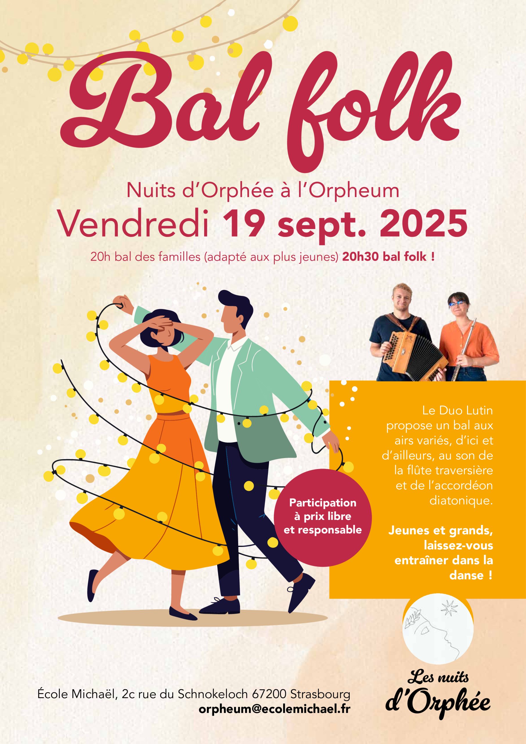Nuits d’Orphée à l’Orpheum. Bal Folk vendredi 19 septembre 2025. Le duo Lutin propose un bal aux airs variés, d’ici et ailleurs, au son de la flûte traversière et de