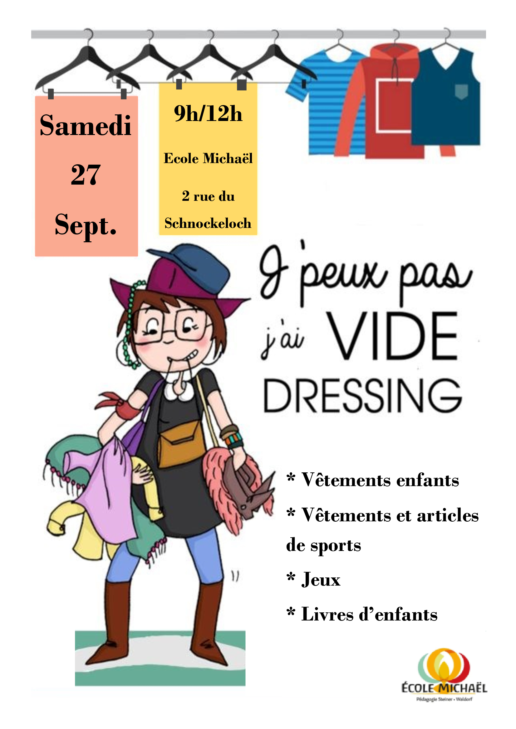 Vide Dressing à l’École Michaël. Samedi 27 septembre 2025 de 9h à 12h. Vêtements enfants Vêtements et articles Jeux et livres d’enfants